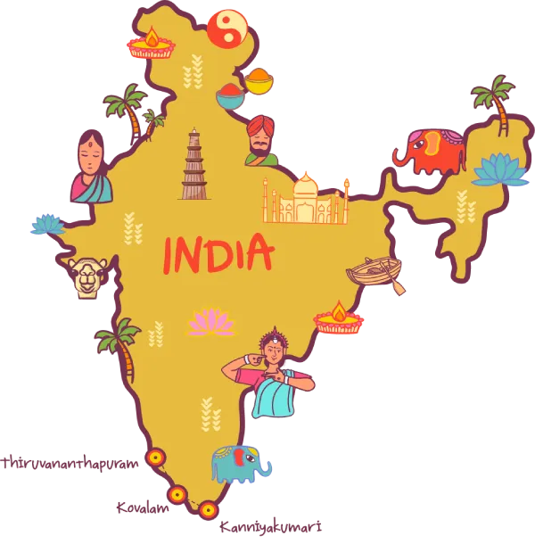 Check-out of the hotel and drive back to Trivandrum airport for your onward journey. Depart with memories of a wonderful trip to Kovalam and Kanyakumari.